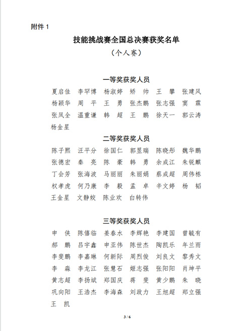 附件:1.技能挑战赛全国总决赛获奖名单