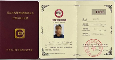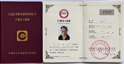 考试通过后,由中国电子技术标准化研究院颁发的ITSS证书 |